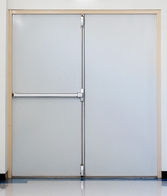 Створка оснащена устройством экстренного открывания – системой «push-bar». Монтаж противопожарных дверей, открывающихся изнутри без ключа, оправдан в помещениях с массовым скоплением людей: торговых и коммерческих зданиях, административных центрах и т.д.